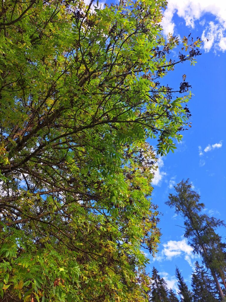 Die Lebenslänglichen bekamen zu ihrer Herbstweide jetzt das obere Stück mit Wald dazu. Darauf freuen sie sich immer besonders, denn da gibt es schmackhafte Laubbäume und -sträucher zum Knabbern! Vor lauter Aufregung wurde erst Mal eine Runde ausgepowert und rauf und runter gelaufen. Außer Atem ging es dann an das Erkunden des Waldes und an das Fressen der Blätter.