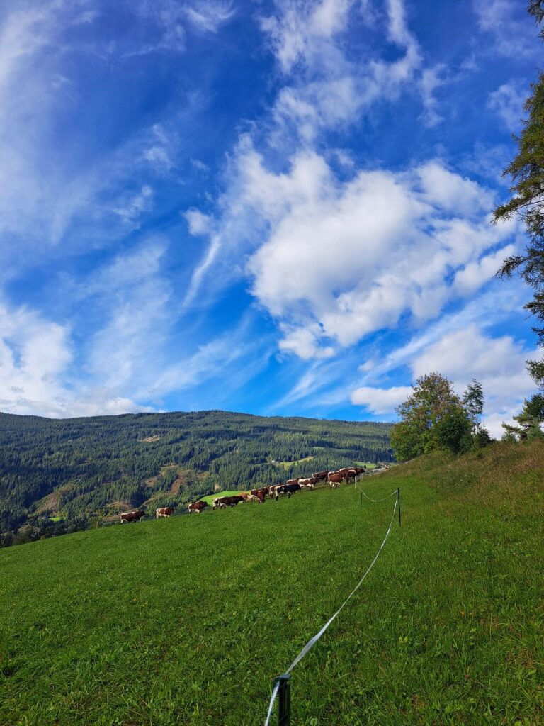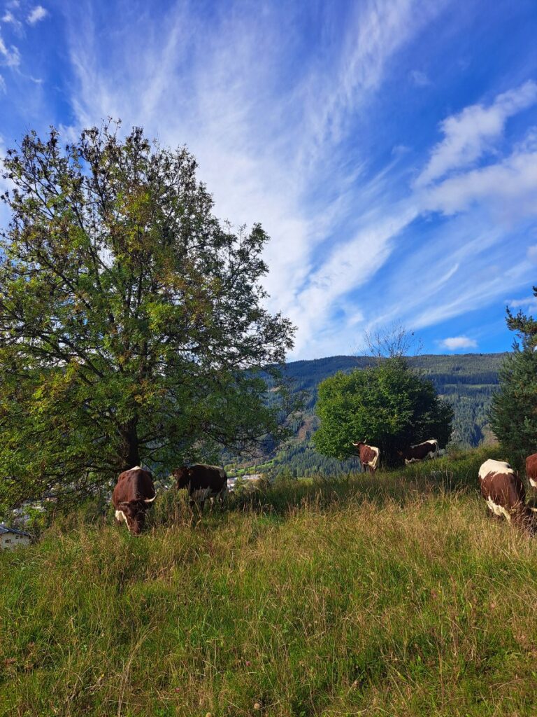 Für unsere Besucher und Gäste ist dies mit Frühling die schönste Zeit zum Beobachten. Vom Hof aus kann man die Rinder wunderbar beobachten, ihnen beim Fressen und Dösen zusehen und ihr Sozialverhalten kennenlernen. Das ist unglaublich beruhigend!