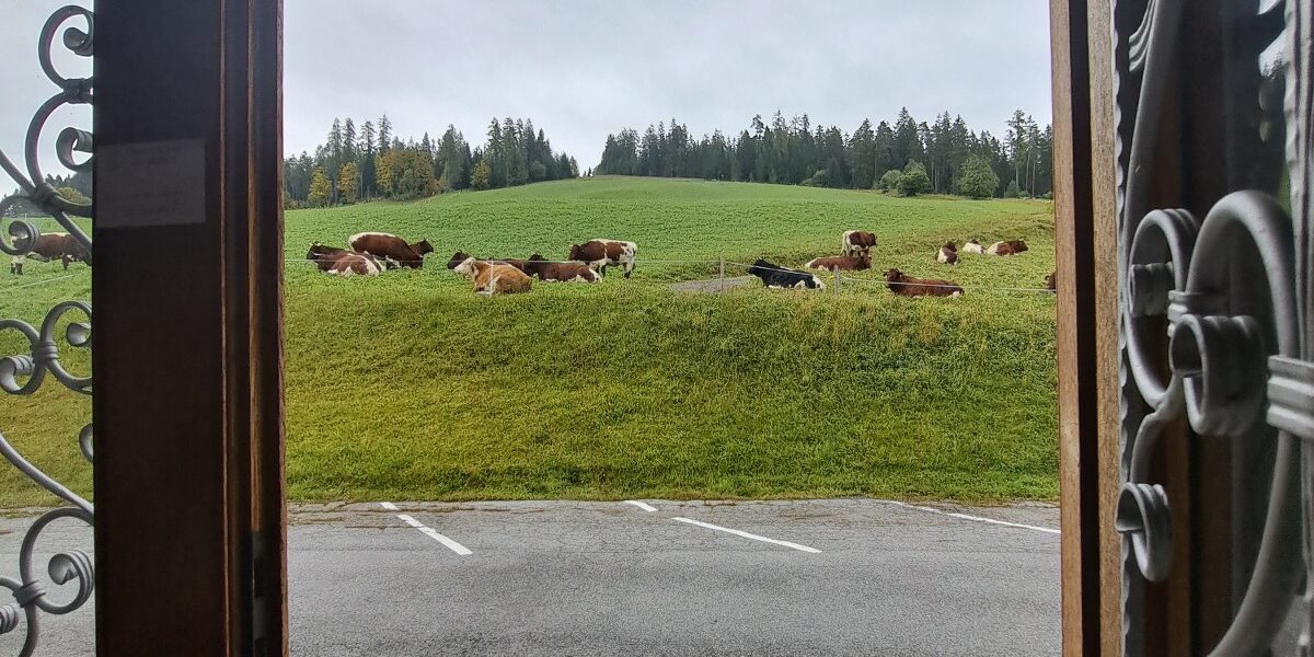 Einmal raus aus der Tür und schon steht man so gut wie im Rinderparadies! Im Herbst, wenn die Weide einmal komplett ums Haus herum geht, ist man fast immer von den Rindern umgeben, sieht man aus dem Fenster, kann man sie ausgiebig beobachten.