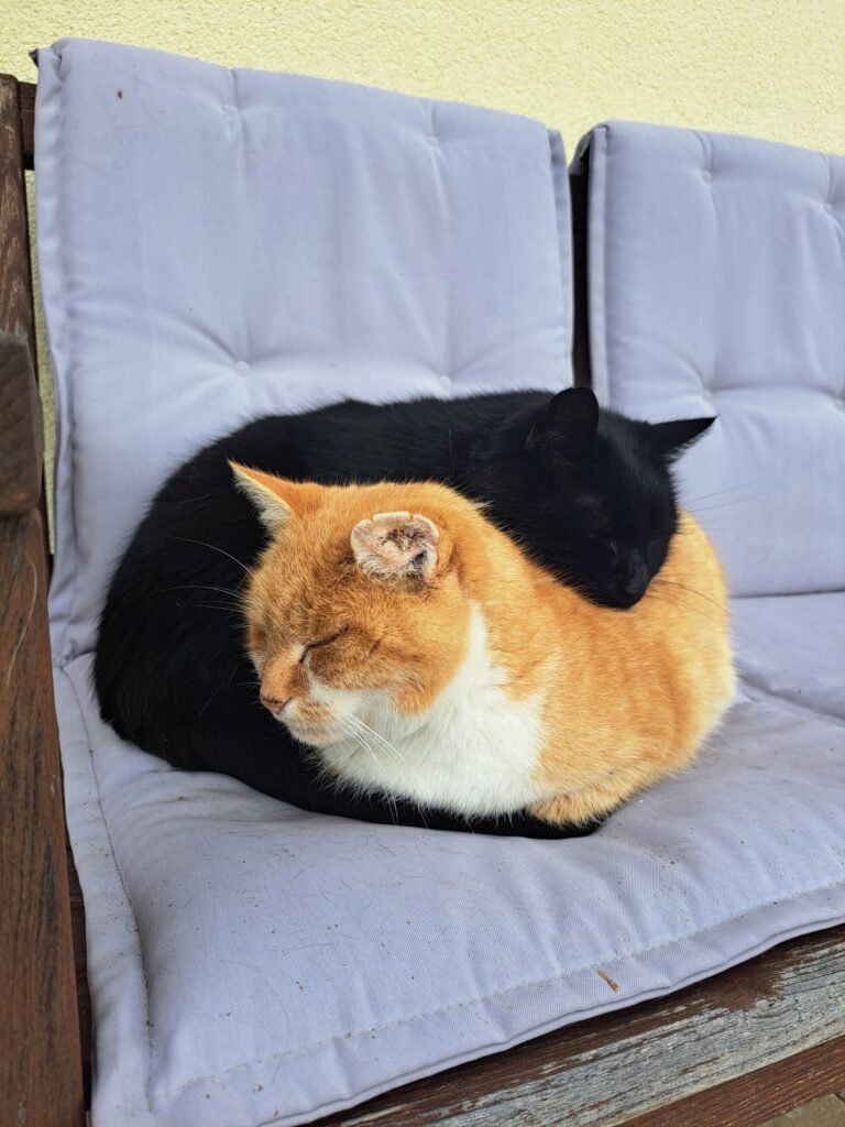Auch Katzen können Freundschaften haben, so wie Pauli und Leo. Die zwei Kater kuscheln sehr gerne miteinander und mögen sich sehr. Beide sind auch sehr verschmust Menschen gegenüber und freuen sich immer sehr über Streicheleinheiten von unseren Gästen und Besuchern.