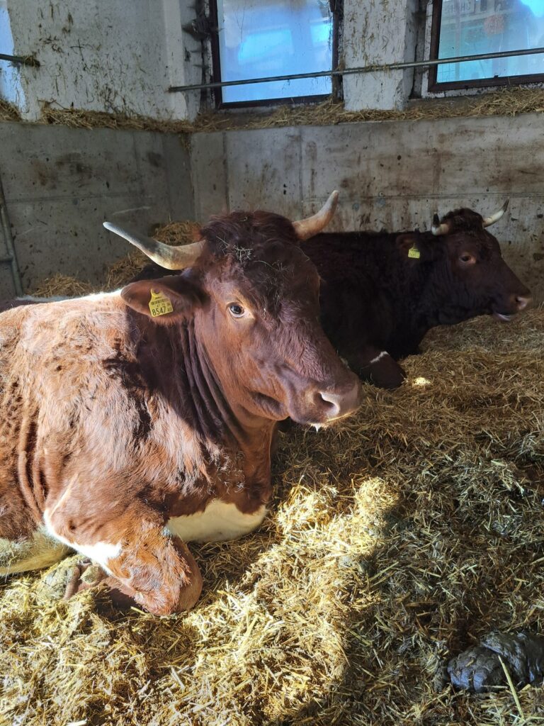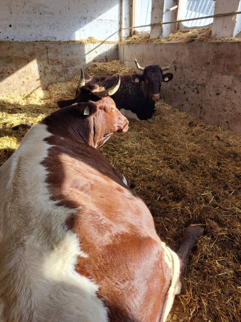 Wir haben die Winterhalbzeit geschafft und nähern uns dem Frühling! Die Rinder sind wohlauf und genießen die Sonne und die frische Luft. Am Wochenbeginn schneite es noch einmal kräftig, doch jetzt hat das Wetter gewechselt und die ersten warmen Tage des Jahres stehen an.