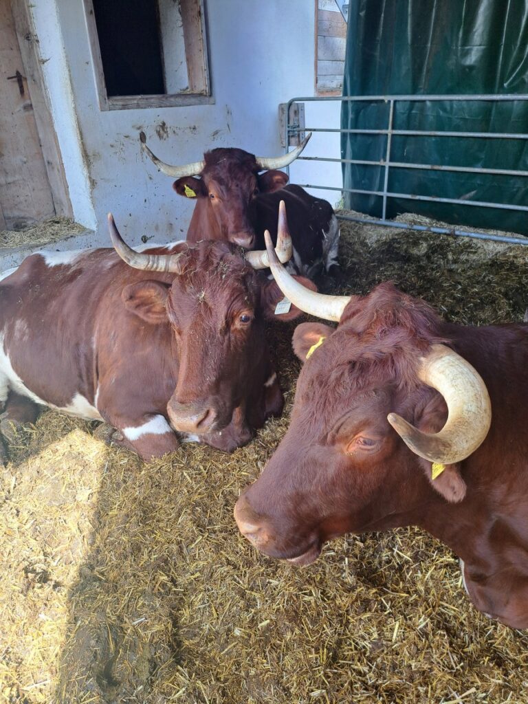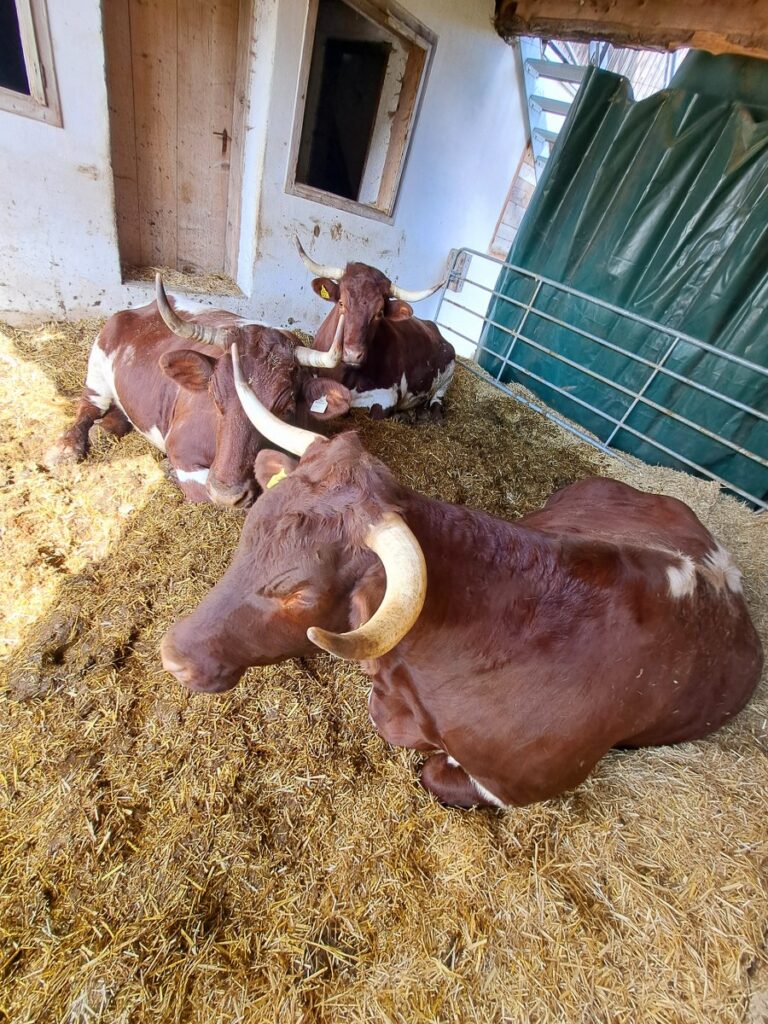Auf den Bildern siehst du die drei, wie sie zusammen im Stroh liegen und ihr schönes friedvolles Leben genießen. In rund zwei Wochen geht es dann auch wieder auf die Weide, und dann ist der Almsommer auch nicht mehr allzu weit weg.