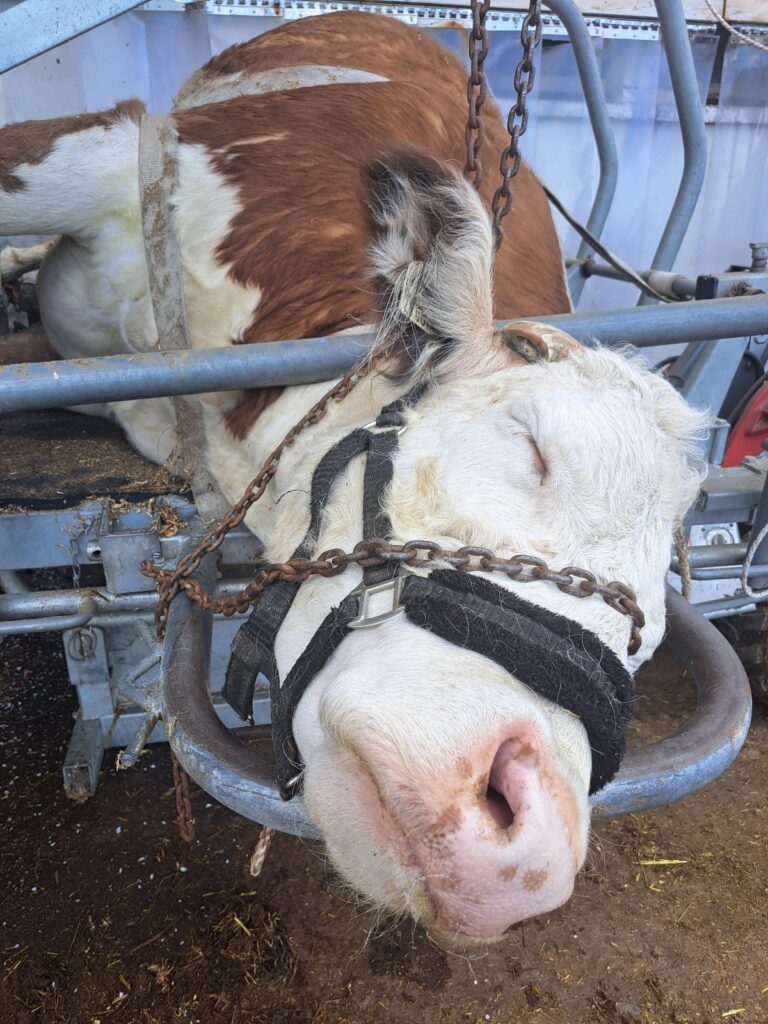 Die Behandlung selbst mag, denke ich, kein Rind. Die Position ist ihnen nicht geheuer, ermöglicht es aber uns, gefahrlos an den Klauen arbeiten zu können. Nach rund 15 Minuten war es dann auch schon geschafft und Cookie konnte wieder befreit werden.