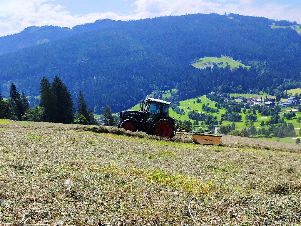 Im August geht es nun an den zweiten Schnitt, das sogenannte Krumet oder, wie wir sagen, Groamat. Ein Teil auf einer Wiese unten im Tal…