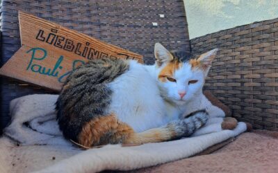 Nachdem nun Streuneropa Garfield wieder da ist, sind es wieder sieben Katzen, die am Hof herumwurschtln. Wenn die Frühlingssonne warm scheint, sind die Lieblingsplätze in…